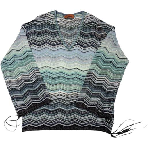 FIORELLA RUBINO: t-shirt con scollo a v in due tessuti blu. L stagione autunno inverno 2024