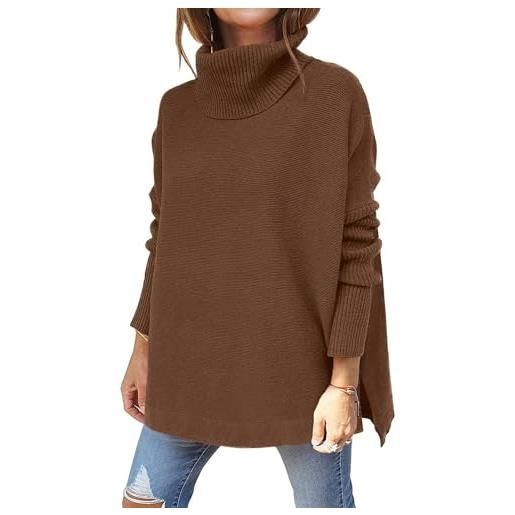 Ugerlov oversized maglione oversize da donna, con maniche a pipistrello, con collo alto, maglia grossa, s/m, 05-kaki, small-medium