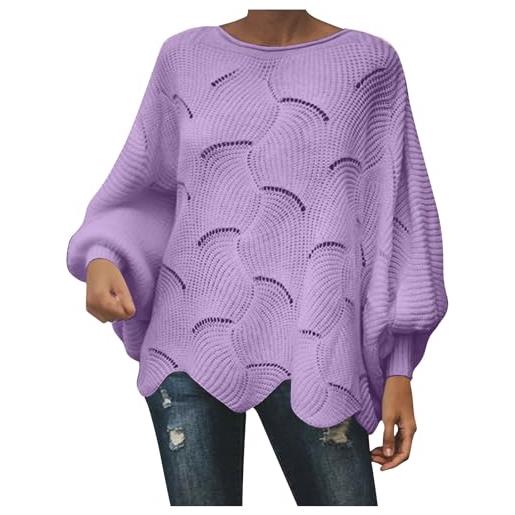Zenlonr maglioni autunnali da donna 2025 casual a maniche lunghe a pipistrello allentati con spalle scoperte pullover in maglia top, viola, x-large
