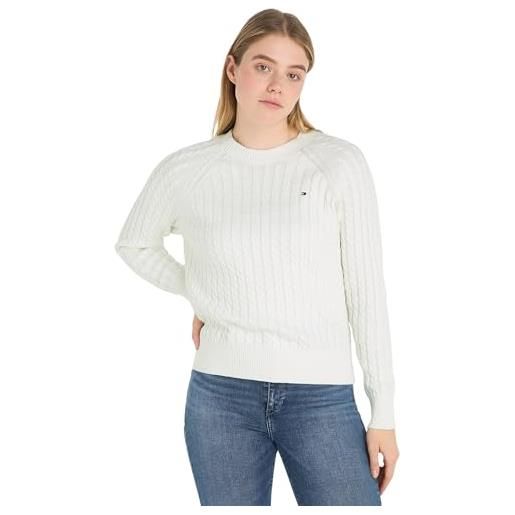 Tommy Hilfiger donna pullover cable fine motivo a trecce, multicolore (dark night navy/ivory silk stp), l