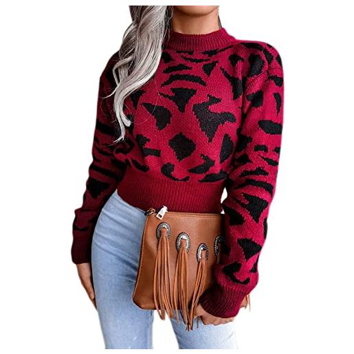 Generic maglione da donna oversize a pois maglione corto per le donne maglione floreale y2k maglioni casual pullover maglione, rosso, m