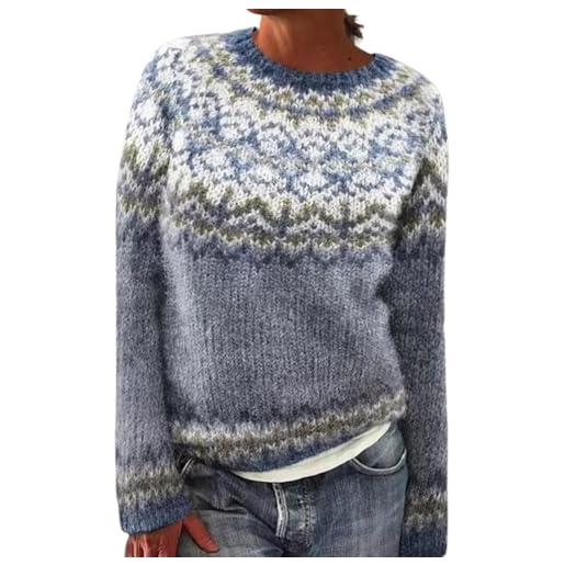 Generic maglione pile donna completi in maglia donna women s knitted isle print retro sweater casual loose crewneck long sleeve lightweight cropped pullover tops tuta maglia maglioncino lana blue s