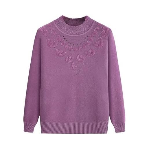 YONGHONGKEJI maglioni da vecchia signora per donna maglieria fodera in pile strass retrò floreale jacquard maglione in velluto di mezza età e anziana girocollo maniche lunghe vestiti da nonna gira