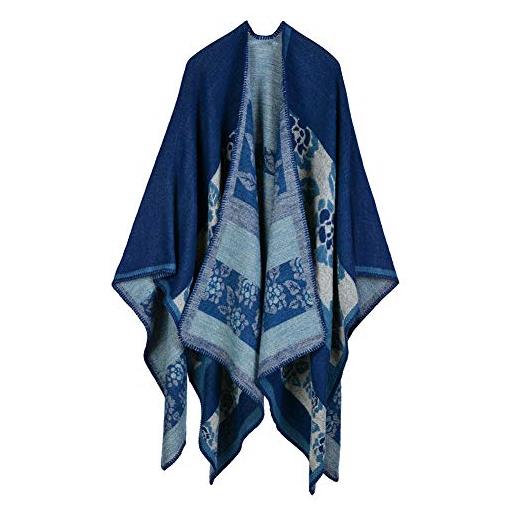 DAIHAN poncho caldo spesso invernale donna vintage scialle bohemian cardigan a cappotto a quadri plaid mantella sciarpa tartan cashmere elegante j stile
