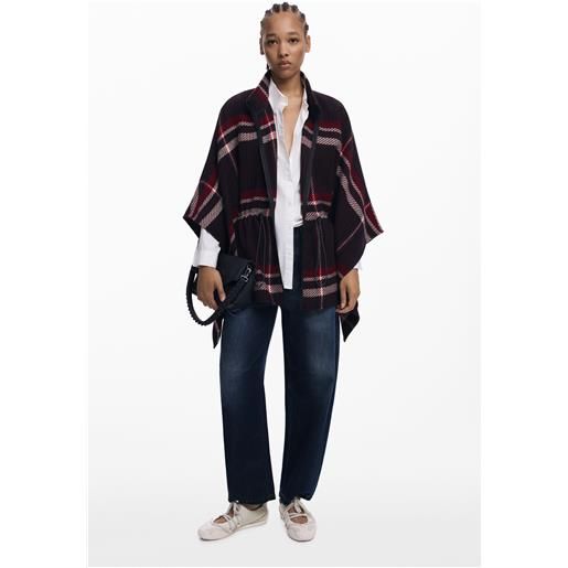 Desigual, poncho tartan, donna, poliestere, nero, u