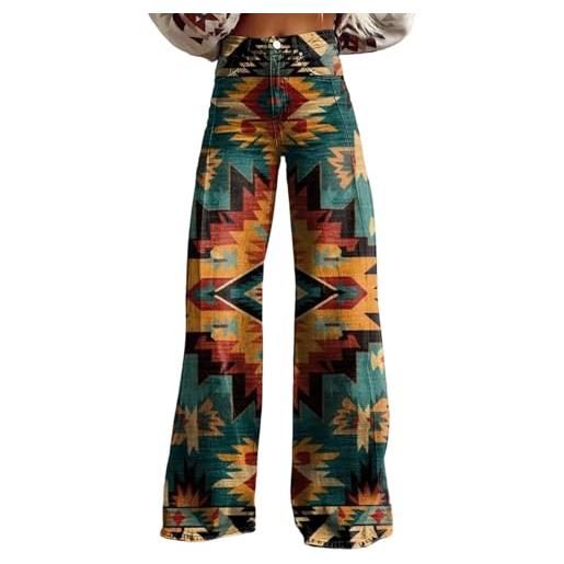 MJGkhiy pantaloni larghi vita alta donna eleganti taglie forti pantaloni gamba larga pantaloni curvy baggy wide leg pantalone con stampa vintage comodi pantaloni lunghi gamba dritta con tasche