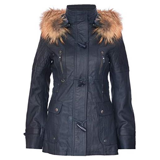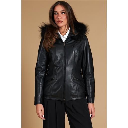 Infinity Leather parka da donna in pelle trapuntata nera con cappuccio staccabile s