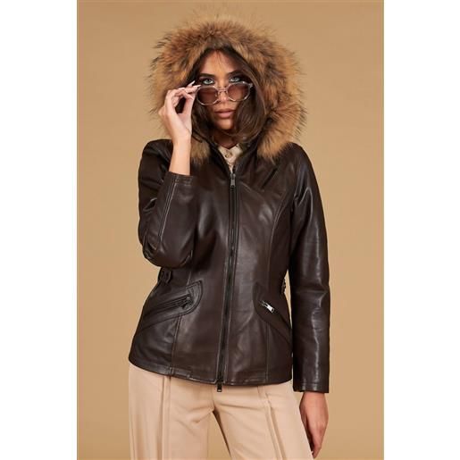 D'Arienzo parka in pelle testa di moro con cappuccio in pelliccia effetto liscio D'Arienzo