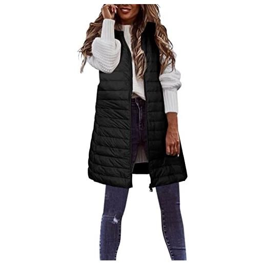 Generico piumino smanicato donna lungo gilet lungo caldo cappotto senza maniche con cappuccio casual giubbotto tinta unita invernale piumino imbottito con cerniera giacca trapuntato termico