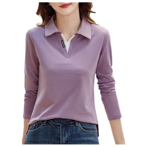 PAYPER florence lady polo a manica lunga da donna sfiancata 100% cotone effetto perlato spacchetti laterali rinforzo sagomato retrocollo bianco (xl)