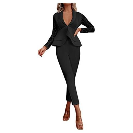 ORANDESIGNE tailleur donna pantaloni e giacca elegante set 2 pezzi pizzo blazer a maniche lunghe + pantaloni a suit moda business ol formale per ufficio 01-nero xs