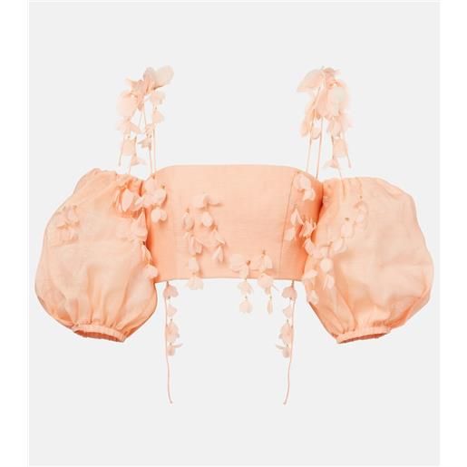 Zimmermann top cropped daylight in lino con ricamo