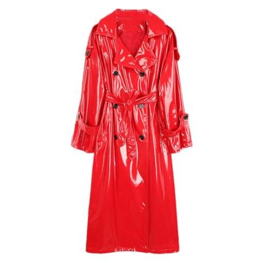 Yeuyyben autunno lungo rosso lucido riflettente vernice trench cappotto per le donne doppio petto più il formato moda, rosso, s