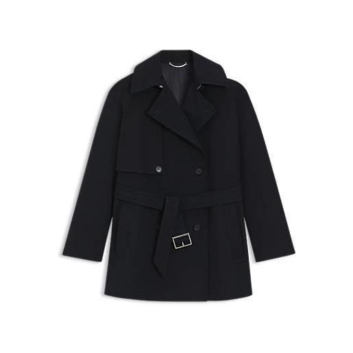 BOSS trench in cotone con cintura con fibbia, blu scuro