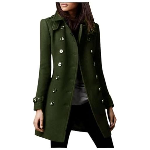 Edelaura trench coat con revers da donna a doppia fila di bottoni antivento in lana con tasche caldo a maniche lunghe lungo giacca monocolore per il tempo libero taglio slim cappotto invernale