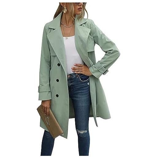 Generic trench lungo da donna, cappotto doppiopetto da donna, cappotti autunnali antivento, classico, con revers, soprabito sottile con cintura