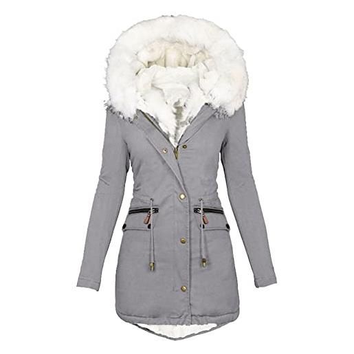 Huoghebg trench da donna caldo cappotto invernale da donna foderato in peluche cappotto donna per autunno e inverno tinta unita giacca donna lungo spessa parka moda giubbotto giacca a vento morbido e comodo