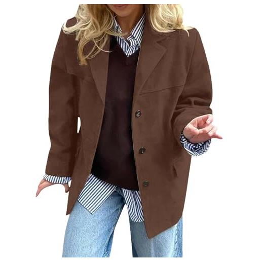 DUHGBNE trench donna autunnale giacca in pelle scamosciata, giacca da esterno marrone in similpelle, autunno 2025, trendy, oversize tailleur eleganti donna lunga autunnale bici città