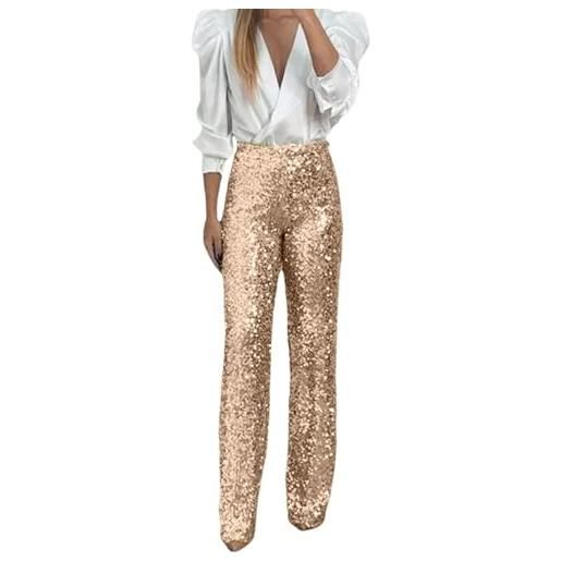 Qzeanxy tuta elegante donna cerimonia - comodo gold tailleur sexy con paillettes strass leopardati leggero outfit casual pelle brillantini ballo completo