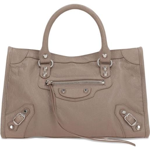 Balenciaga borsa a mano le city con borchie - toni neutri