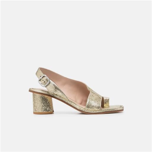 Malu Shoes sandalo tacco oro rosa a punta quadrata tacco sottile 12 cm chiusura alla caviglia moda cerimonia