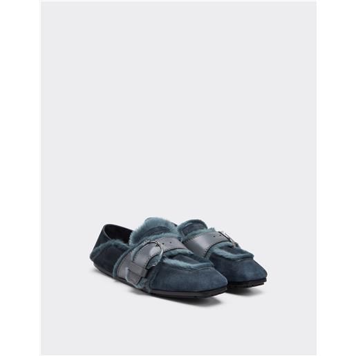 Ferrari mocassino in pelle scamosciata con bordature in pelo - female scarpe e stivali blu pavone 37