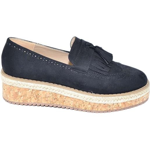 Malu Shoes scarpe mocassino college donna in camoscio nero con bon bon fondo in sughero e gomma comode moda
