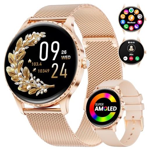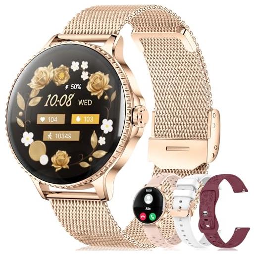 Betatree smartwatch donna chiamate e risposta/whats. App/assistente vocale, 1,85 orologio digitale fitness tracker con cardiofrequenzimetro/monitor sonno/contapassi, 110+ sportivo smart watch android ios oro
