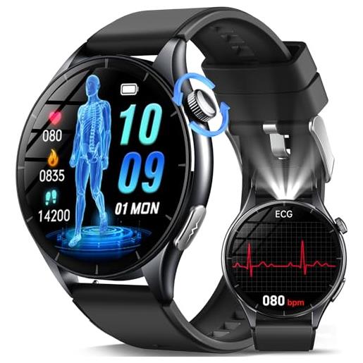 LIGE smartwatch uomo con chiamata bluetooth/1000mah batteria/led torcia, 1.7"grande, 100+ modalità sportive, cardiofrequenzimetro, sonno, notifiche orologio smartwatch per android ios, silicone