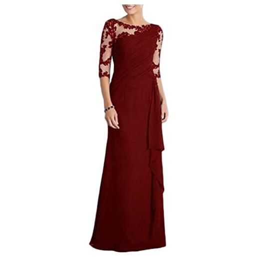 Botong 3 pezzi di abito da donna bordeaux con nappe, in chiffon, per la madre della sposa, completo pantalone elegante, ideale per ballo e serata, borgogna, 48