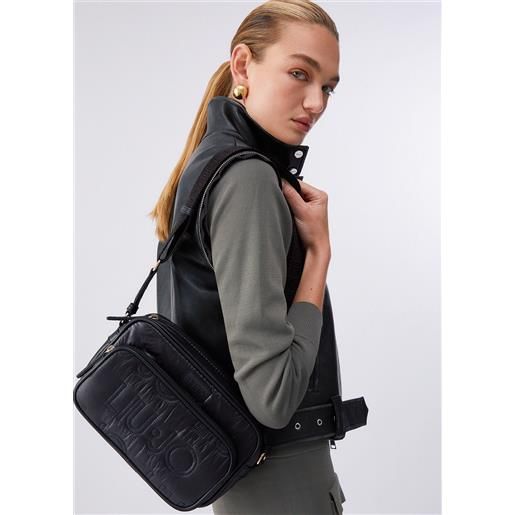 Liu Jo borsa halona tracolla m con logo in rilievo aa5153 e0087 nero