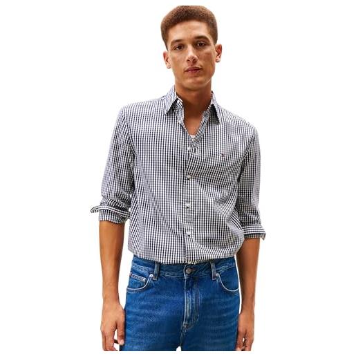 Tommy Hilfiger flex poplin medium check shirt mw0mw41712 camicia l/s, blue (preppy navy/check), l adulto
