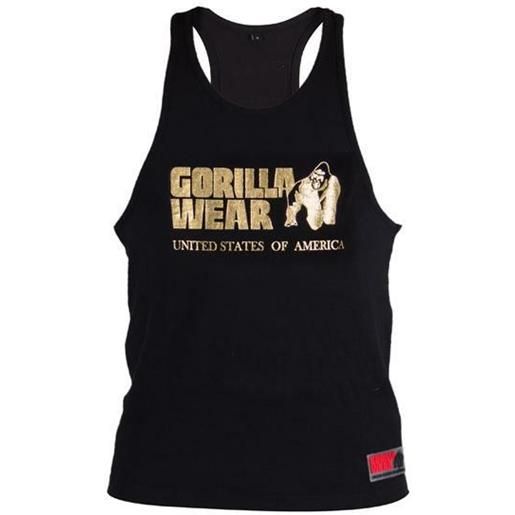 Gorilla wear canotta classica per fitness, colore bianco, bodybuilding, sport, tempo libero, con logo stampato, leggera e comoda per un movimento ottimale in cotone