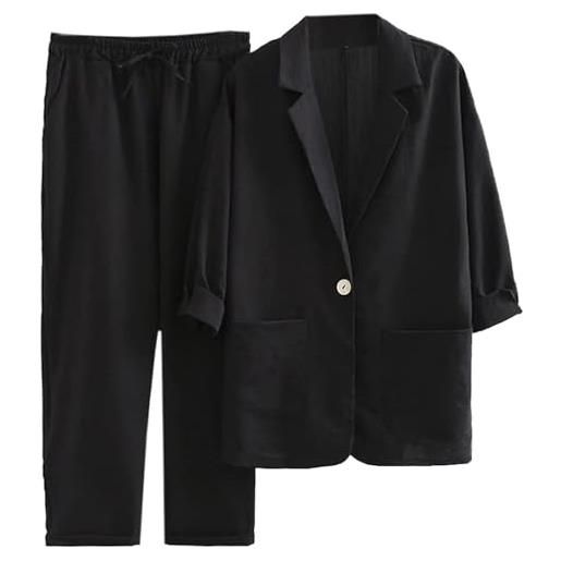 Generico completo donna estivo con pantalone larghi comodi offerta set di lino set di due pezzi comodo maniche lunghe camicia + pantaloni con bottoni leggero tute traspiranti moda completo per spiaggia estate