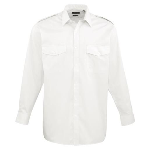 Premier workwear long sleeved pilot shirt camicia, bianco (white), xx-large uomo