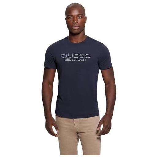 Guess t-shirt da uomo eco basic con logo in velluto, blu intelligente, m