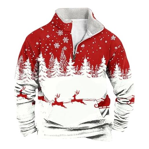 WWricotta maglione natalizio uomo 2025 con stampa renna diventente e fiocchi di neve, felpa interno in pile, pullover con zip 1/4, maglione a maniche lunghe casual per feste di natale