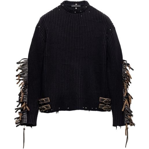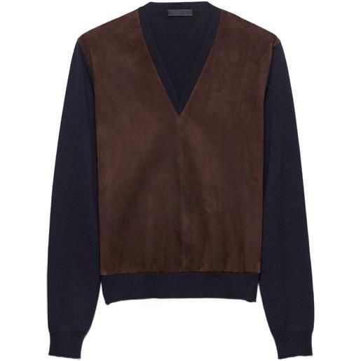 Prada maglione in lana superfine e pelle scamosciata - marrone