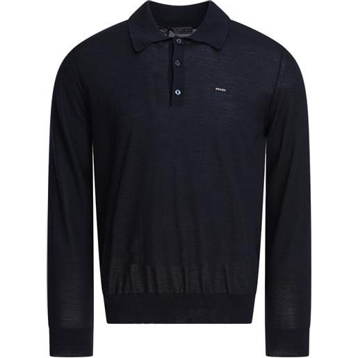 Prada polo in lana con logo - blu