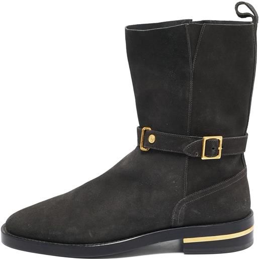 Versace Pre-Owned - stivaletti con fibbia - uomo - pelle scamosciata di vitello/pelle di vitello/pelle di vitello/gomma - 44 - verde